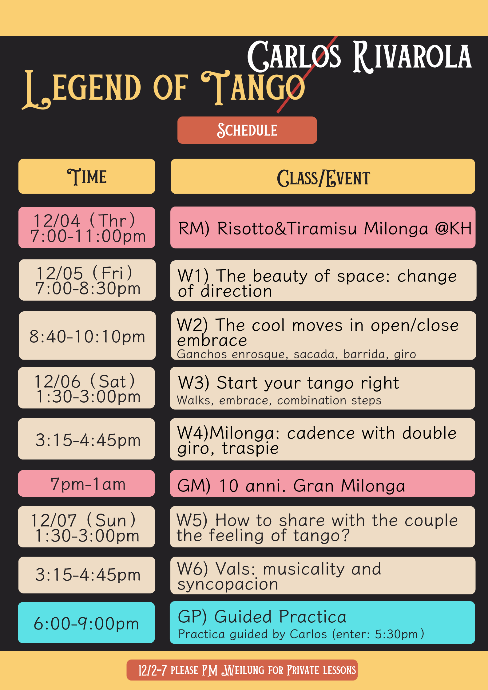 private lessons time please check the registrition form