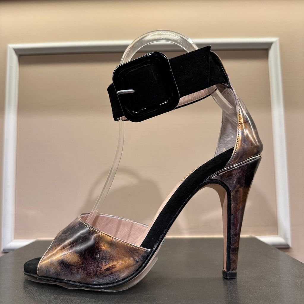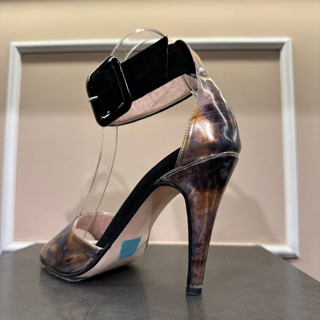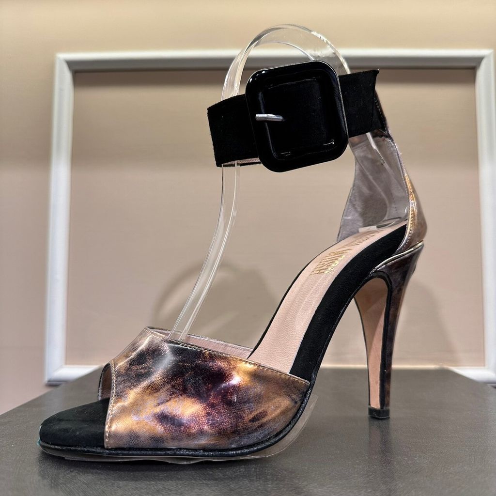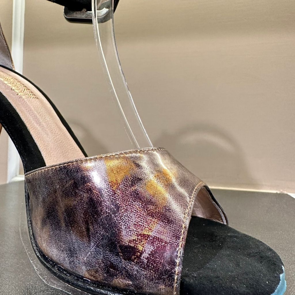 出清特惠 Ariadna Coper 古銅紫拼接絨布粗踝跟鞋