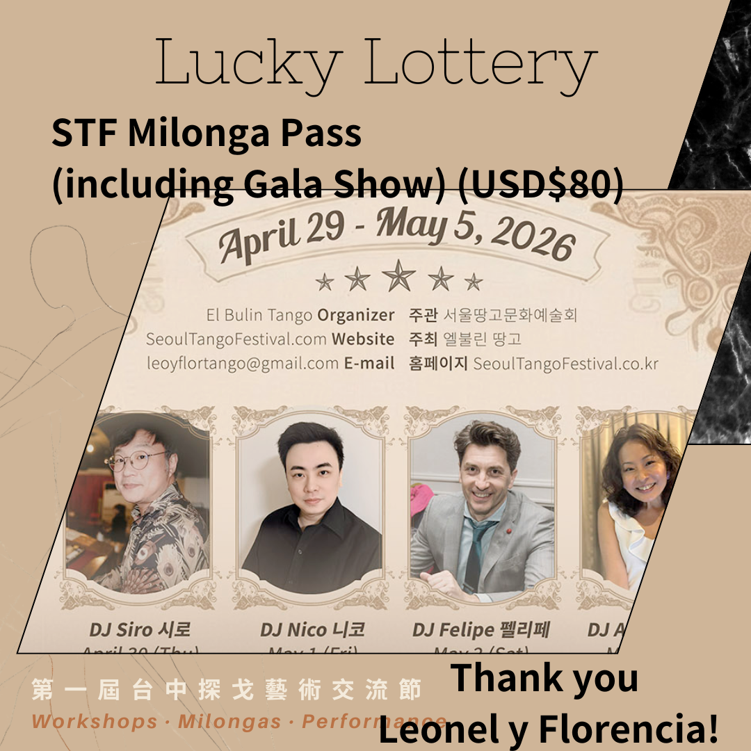 2. April 4/29-5/5 2026 Seoul Tango Festival (Sponsor: Leonel Hung-Yut Chen y Florencia Hwayi Han, El Bulín Tango 엘 불린 땅고)